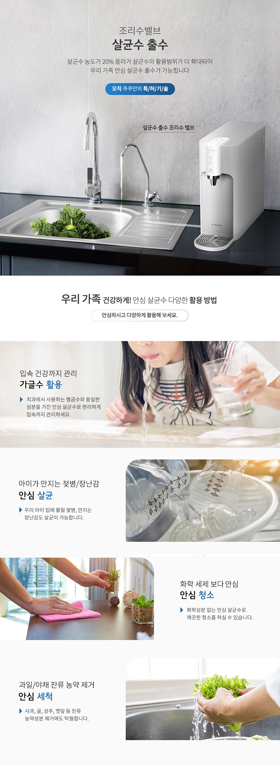 오직 쿠쿠만의 특허기술! 조리수밸브 살균수 출수 입니다.