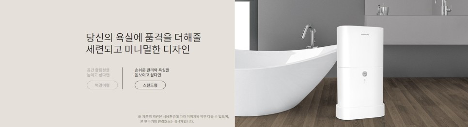 스탠드형은 보편화된 제품이에요! 손쉬운 관리가 이루어지기 때문에 편의성을 높인 제품인데요! 세련되고 미니멀한 디자인으로