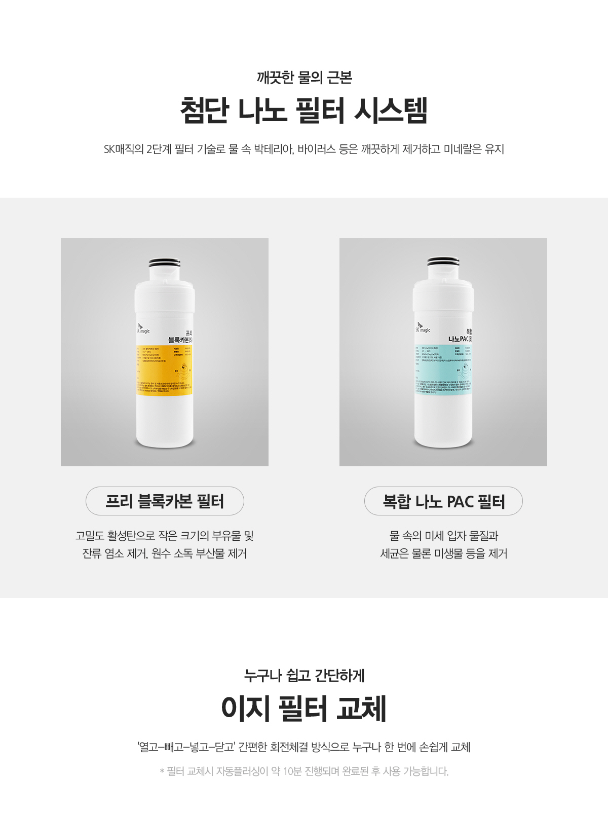 깨끗한 물의 근본인 첨단 나노 필터를 쉽게 교체해서