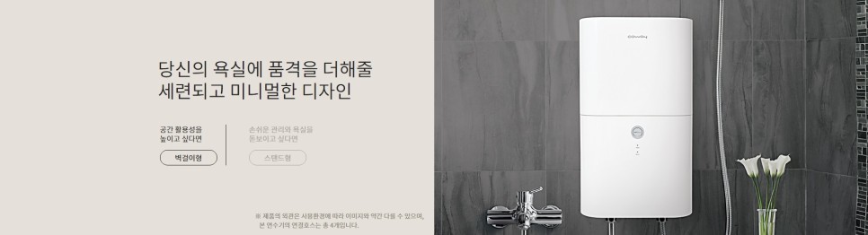 다소 좁을수 있는 욕실에 벽걸리로 설치를 함으로써 더욱 공간 활용을 높일수 있어요! 그리고 벽걸이 같은 경우는 벽걸이 TV와 마찬가지로
