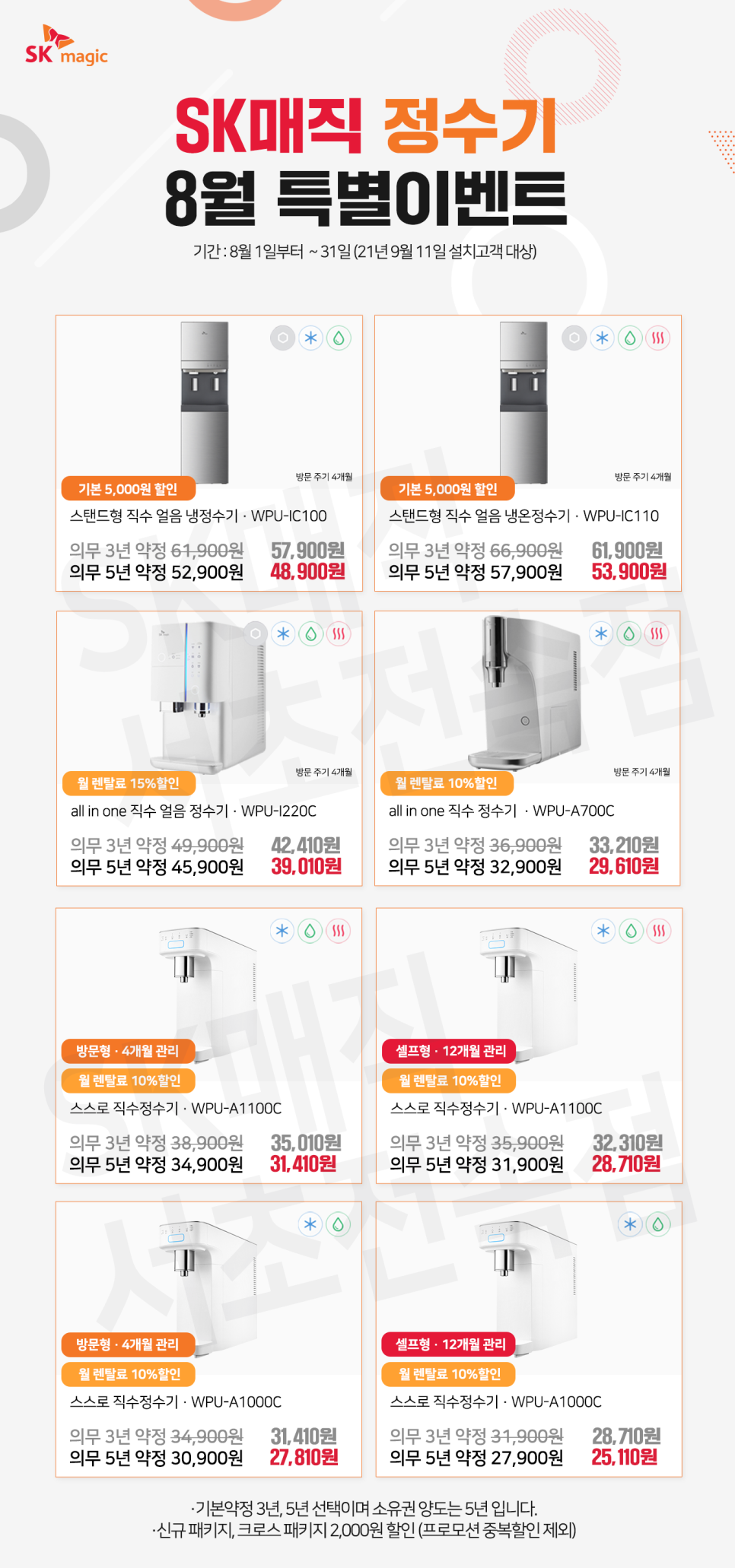 용인얼음정수기렌탈 SK매직 정수기라면 자동 살균을 빼먹을 수 없죠!