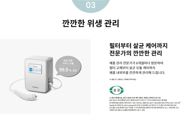 코웨이 관리 전문가의 깐깐한 위생관리를
