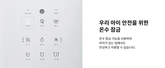온수 잠금 기능이 있어서 안심하고 냉수,온수 모두 사용할 수 있습니다!
