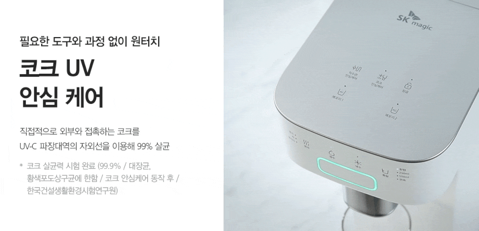 직수관 전해수 안심케어와 코크 UV 안심케어로 더욱더 깨끗하게 살균을 도와주어