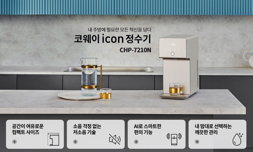 아이콘 정수기는 컴프레서를 없앤 코웨이만의 혁신적인 저소음 기술로