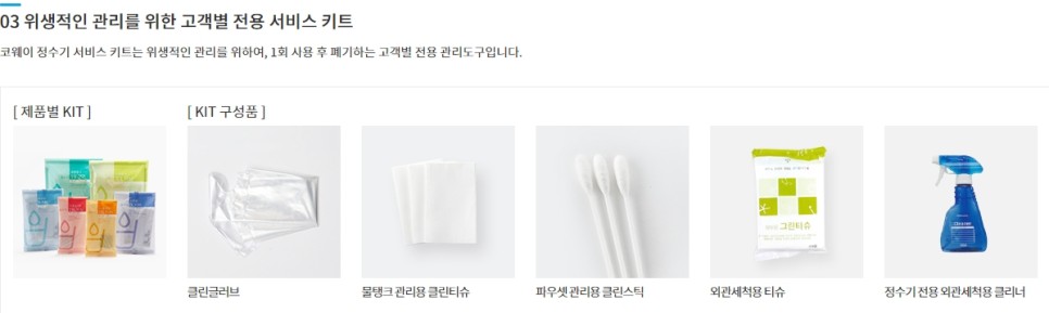 셀프관리로 이용하는분들도 주기에 맞게 필터배송 및 관리키트를