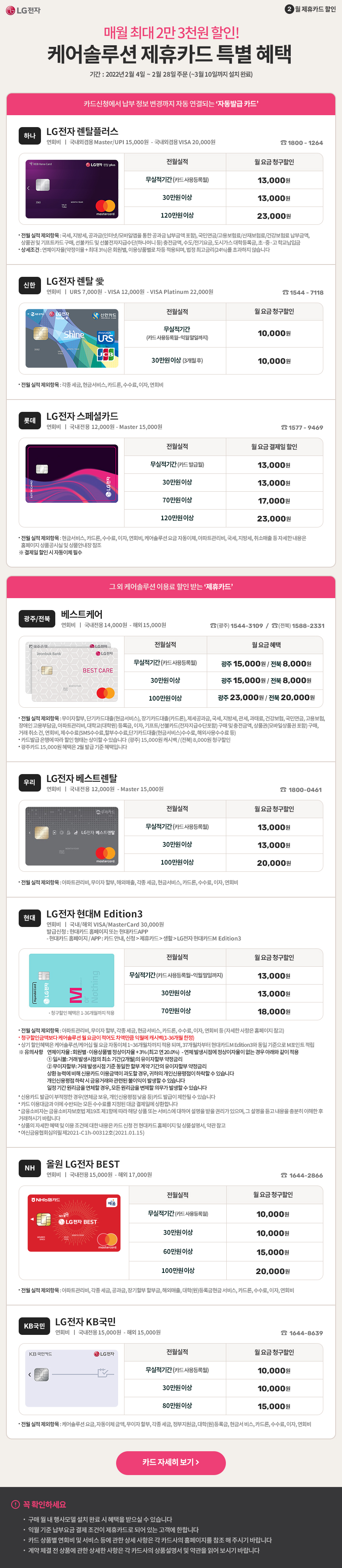 제휴카드할인을 이용하여 더 경제적인 금액으로 송도엘지정수기렌탈을 이용하실 수 있는데요.