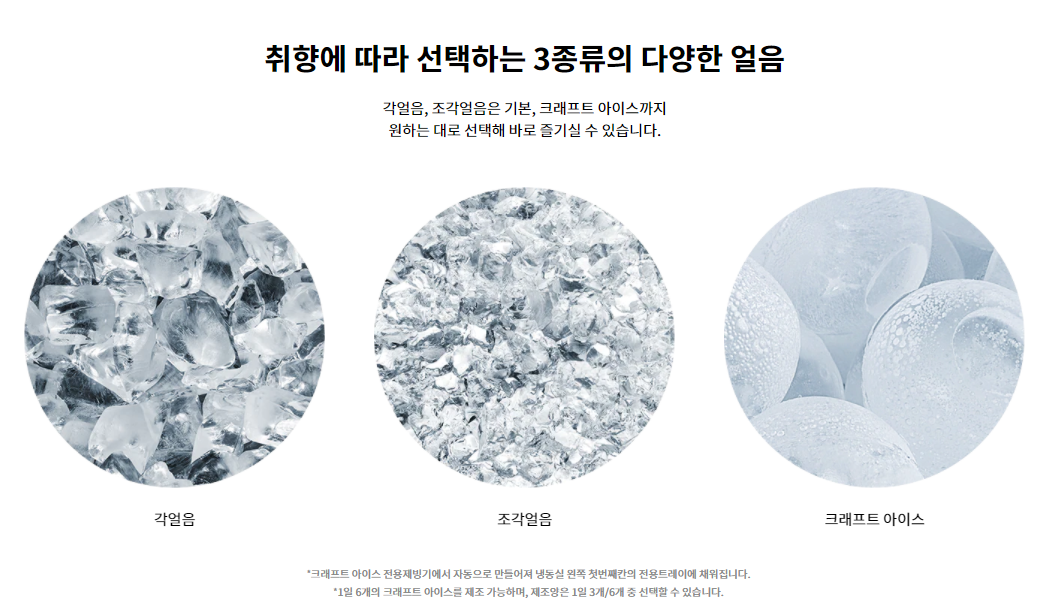 요즘 다양하게 이용되는 얼음은 3종류의 다양한 얼음이 출수되는데요.