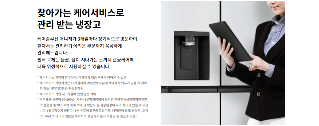 현존하는 LG정수기의 위생성능을 그대로 탑재하여