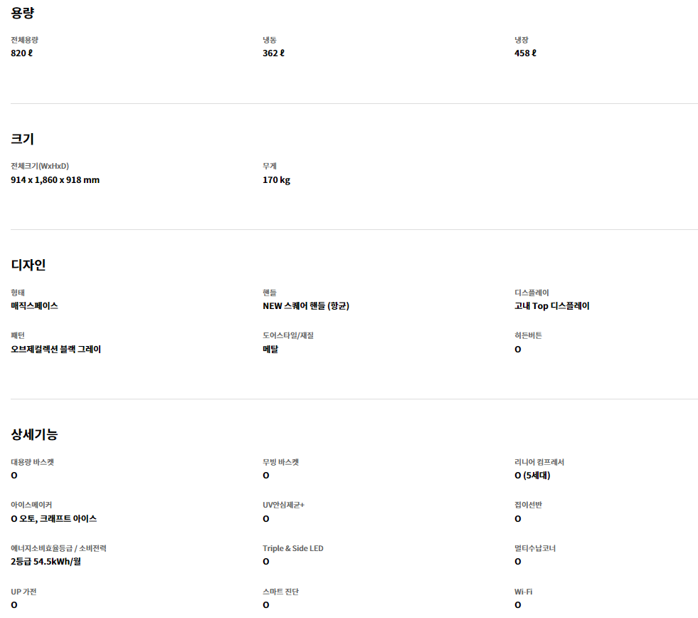 그럼 LG DIOS 봉담냉장고렌탈이 가능한 제품은 어떻게 구성되어있는지