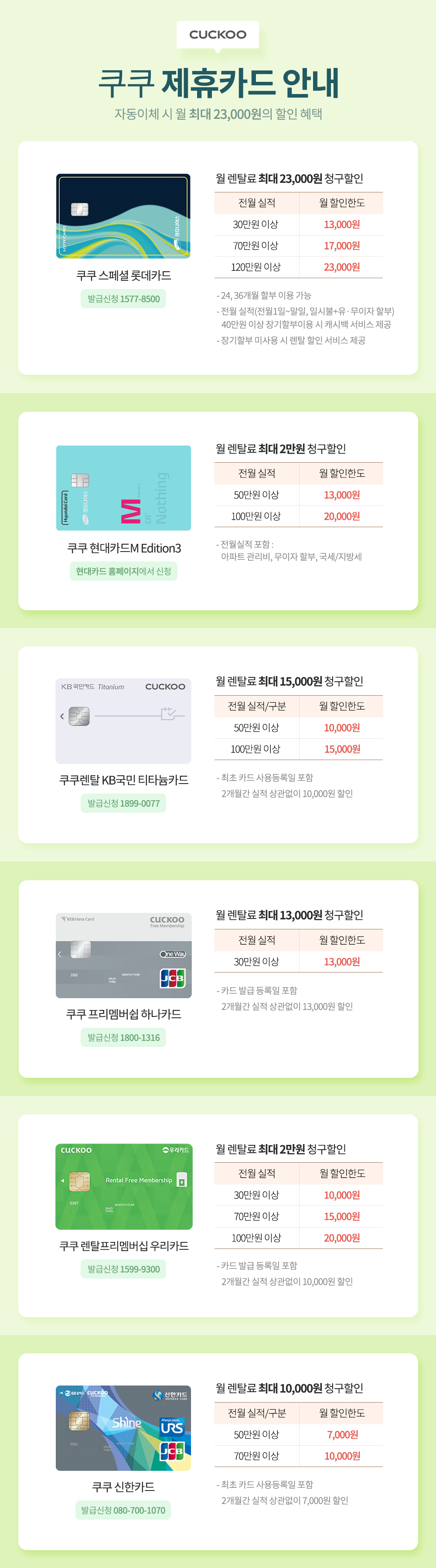 제휴카드를 발급 후 렌탈료 결제방식을 제휴카드로 자동이체 등록을
